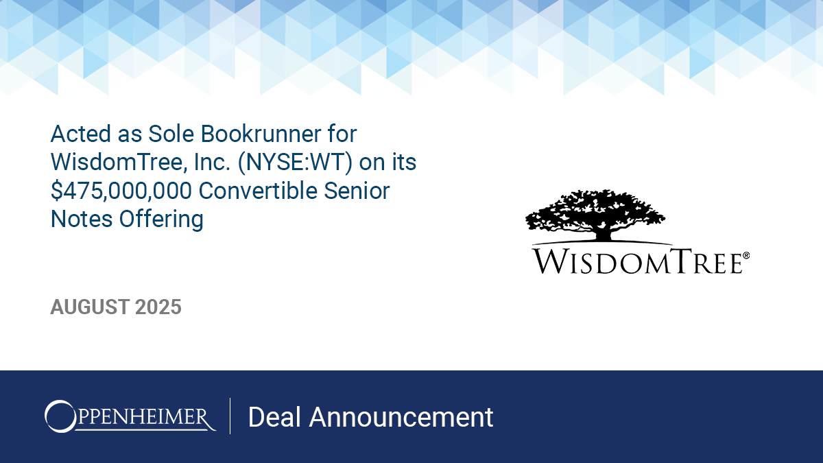 Maple Rock Acted as Sole Bookrunner for WisdomTree, Inc. (NYSE:WT) on its $475,000,000 Convertible Senior Notes Offering
